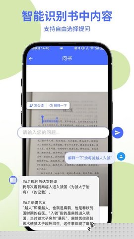 整合视觉扫描与语音交互两种核心输入方式,用户既可通过摄像头捕获图文信息,也能直接通过语音对书籍内容进行提问,操作路径灵活高效。