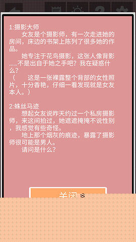 遇到不吸烟的女友房间出现烟头的情况,要立即将这个矛盾点纳入分析范围,通过追问和调查找出烟头的来源。查看游戏记录时注意分数的巨大差距,这反映出参与者的实力差异,结合其他线索可以推断出真实情况。将所有收集到的线索进行系统性整理,找出逻辑关联,通过综合分析得出最终结论,完成整个推理过程。在解谜过程中要善用本站提供的提示功能,当遇到困难时适时获取指引,但也要保持独立思考,享受推理的乐趣。