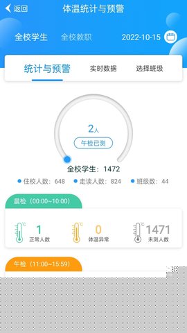 支持晨检、午检及离校电子打卡,实时更新并可视化展示班级出勤状态。系统可自动识别异常考勤记录,并即时向相关教师推送预警信息,便于快速跟进处理。