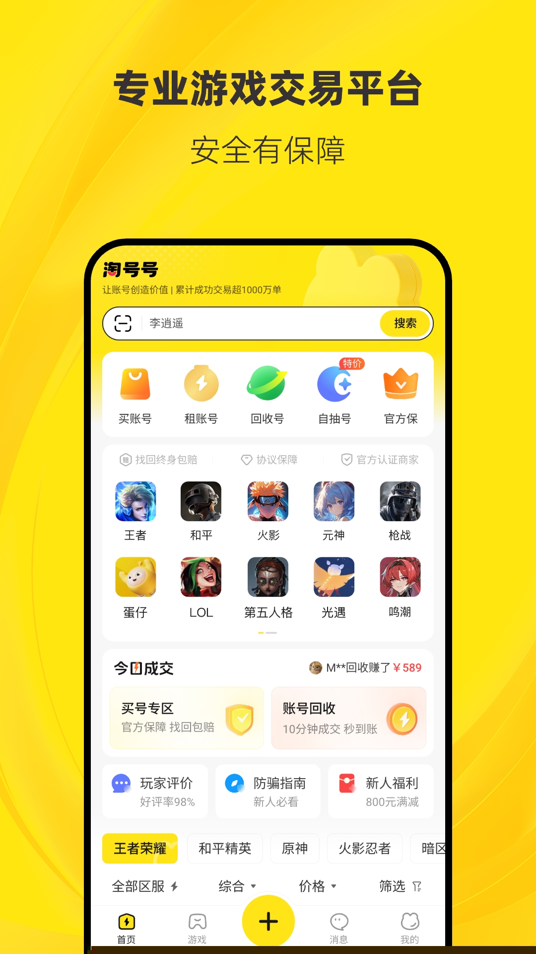 淘号号是一款由深圳市数字狂飙科技有限公司研发的专业游戏数字资产交易与管理软件,专注于为全球游戏构建一个安全、高效、透明的虚拟商品流通环境,深度整合了账号买卖、装备交易、游戏币兑换及账号回收等核心服务,通过严格的实人认证体系与创新的找回包赔保障机制,从根本上解决了网络游戏资产交易中普遍存在的信任缺失与安全风险问题,简化交易流程,凭借零手续费策略与智能化的流量扶持系统,有效降低了用户的交易成本,并显著提升了闲置游戏资产的流通效率,是进行游戏资产处置与增值的可靠工具。