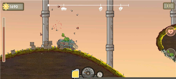 物理撞击是核心攻击手段之一,驾驶战车碾过僵尸的反馈感强烈,结合植物们的远程火力,形成了远近结合的立体战斗节奏。