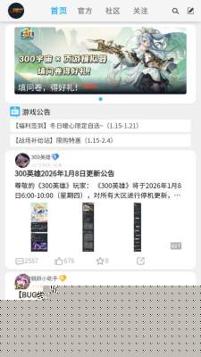 300宇宙是一款专为300系列游戏设计的官方综合性社区软件,深度整合了游戏数据同步、战术策略分析、原创内容分享以及实时社交互动等核心模块,为策略竞技爱好者提供一个数据驱动、内容优质且氛围活跃的专属空间,通过专业工具与社区生态的结合,显著提升的游戏体验与战术水平。