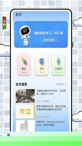 语言学习材料与写作训练紧密结合,提供包括范文深度解析、高频句型归纳及语境化练习,同步强化用户的外语行文能力与语感。