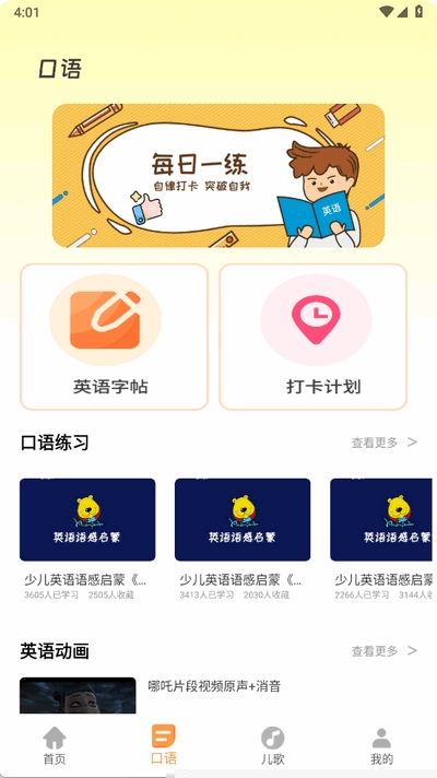 进入口语练习模块,跟随提示录制跟读音频,系统会自动分析发音并标记需改进部分,通过反复练习提升语音准确性。
