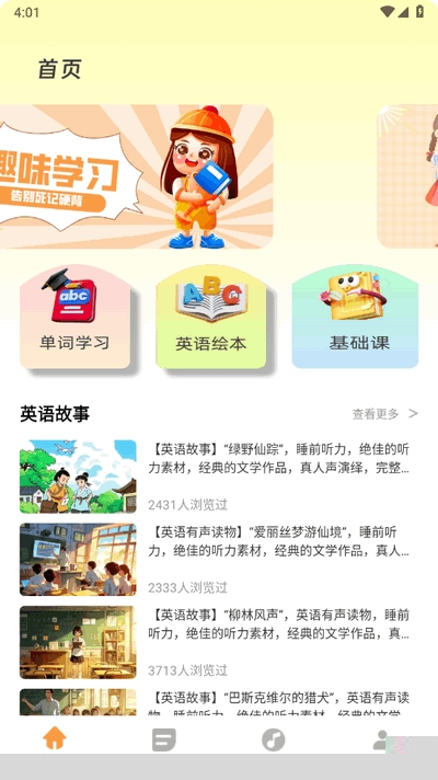 首次启动需创建儿童学习档案并选择对应年龄阶段,系统将基于档案信息智能推荐起始学习单元,引导进入情景化学习界面。