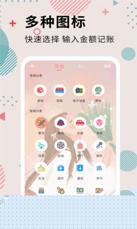 3>场景化图标设计提供涵盖通用及特定场景的丰富图标库,让每一笔收支都能通过直观的符号快速归类和识别。