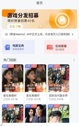 麻雀短剧是一款集海量短剧内容观看与便捷视频创作为一体的移动软件深度聚焦于移动互联网时代的碎片化娱乐与轻量化内容生产需求,为用户提供了一个从发现、观看到创作、分享的完整生态闭环,内聚合了海量涵盖都市、悬疑、甜宠、穿越等多题材的精品短剧,每集时长精炼,叙事紧凑,适合在各类短暂闲暇时间沉浸式追剧。其内置了功能强大的视频编辑套件,降低了专业视频制作的门槛,使普通用户也能轻松将创意转化为高质量的短剧作品,并实现一键多渠道发布与互动。