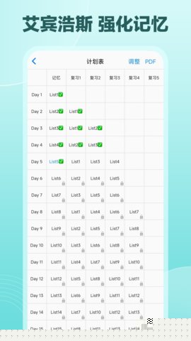 当选择智能记忆模式后,算法会为每个单词标记一系列由密到疏的复习时间点。到达预定时间,该词汇会自动出现在当日复习任务列表中,确保在最佳时机进行回顾,对抗遗忘。