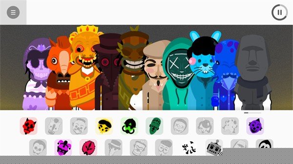 每一个独特的面具形象都绑定了一套专属的声音采样库,涵盖鼓组、贝斯线、人声合唱及各类合成器音色,角色间的搭配直接决定了最终作品的音乐风格走向。