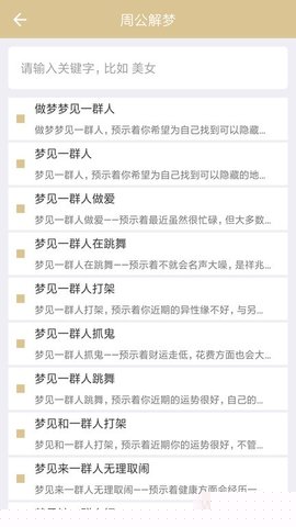 支持通过梦境元素、情绪色彩、发生场景等多维度关键词进行交叉检索,快速定位相关解析与文化典故。