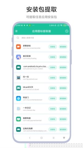自动检索并列出设备中所有已安装的第三方软件,用户可直观查看并选择需要提取图标的目标软件,解决了手动查找图标文件困难且低效的痛点。