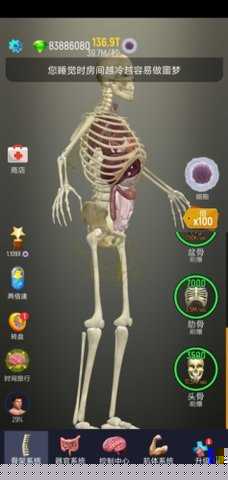 操作方式极为直观。主界面中央区域为当前的培育焦点,下方为可解锁的身体部件队列。初期仅能进行基础细胞采集,当细胞数量达到指定阈值,即可激活第一项蓝图——人体骨架。必须成功构建出完整的骨骼框架,后续的肌肉系统、神经网络等高级部件才会依次出现在可解锁队列中。这是一种严格的依赖关系,模拟了生物发展的客观规律。建议优先确保离线前已启动一项耗时较长的部件构建,以最大化利用时间资源。