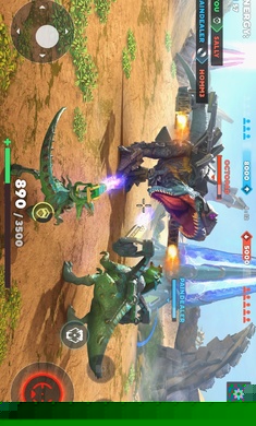 基础操控围绕移动、瞄准与技能释放展开。通过虚拟摇杆控制恐龙走位,灵活利用岩石、建筑等掩体规避范围伤害。点击瞄准按钮可锁定视野内敌人,拖动屏幕则能调整射击角度与预判弹道。每只恐龙都拥有一个专属主动技能,震地咆哮可产生范围眩晕效果,合理释放时机是掌控团战的核心。