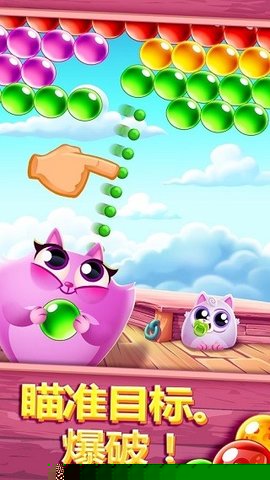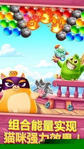 核心目标是在每一步发射中,精准地将彩色泡泡射入顶部的泡泡矩阵中。当三个或更多同色泡泡相连时们便会消除,释放被困的猫咪伙伴。每一关卡都设定了需要解救的猫咪数量与步数限制,必须在步数耗尽前完成所有救援。通关后,剩余的步数会转化为额外分数,累计分数将决定通关星级,追求高分与满星评价是进阶的主要动力。