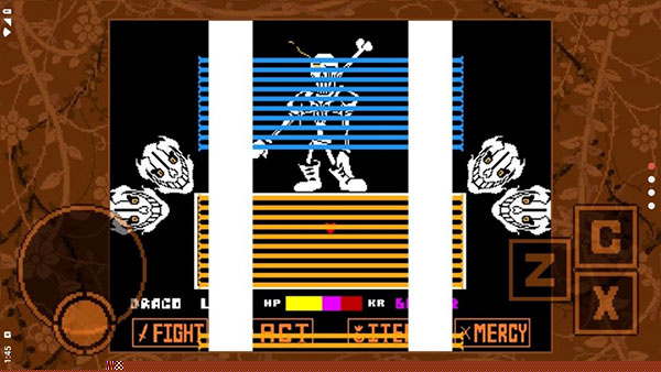 核心体验聚焦于审判厅内与Papyrus的终极对决。这场战斗被精细划分为四个连续阶段,分别对应其悲恸、震怒、幻忆与信守四种心理状态。初始阶段,Papyrus的攻击以劝阻和阻挡为主,弹幕速度较缓但范围广,此时应熟悉基础移动与闪避节奏,并积极通过战斗菜单中的交谈选项进行互动,这是走向和平结局的基石。进入愤怒阶段后,骨刺的攻击频率与速度显著提升,并开始出现追踪性弹幕,此时需要保持高频移动,利用场地边缘进行迂回,并留意场景中随机刷新的宝箱,及时获取恢复类道具。