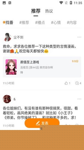 为每部作品建立了评分系统与章节讨论区,读者可以在每话结尾处发表剧情分析、分享感悟,并与同好进行深度交流。