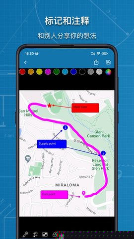 整合线性标注、角度测量与自由文本注释功能,用户可在同一图像上构建包含尺寸数据、方向信息和文字说明的复合型视觉档案。