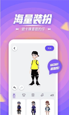 卡噗是一款集3D虚拟形象创作、个性化空间装扮与社交互动于一体的移动端软件。用户能够通过精细的捏脸系统打造专属虚拟形象,并利用海量服饰、妆容及动态模板进行个性化表达。其核心在于构建一个连接虚拟形象与社交场景的创意平台,支持用户设计专属虚拟空间小窝,并与好友进行远程创意合拍,实现了从静态形象展示到动态互动分享的完整社交体验。