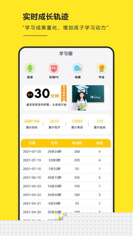 内置高灵敏度语音识别引擎,在孩子跟读句子后即时进行多维度发音分析,从准确度、流利度、完整度给予可视化反馈,针对性纠正语音问题,强化口语输出能力。