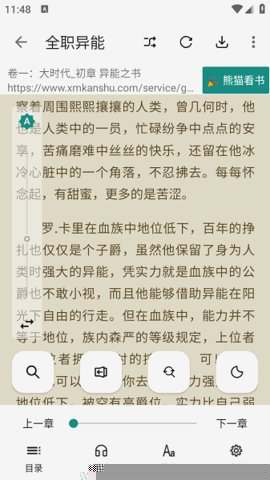 支持自定义屏幕滑动区域以执行翻页、呼出章节菜单等操作,结合直观的中央触控调出设置面板,交互逻辑清晰高效。