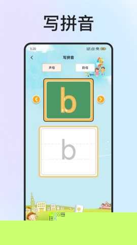 孩子可以点击屏幕上的任意声母或韵母,即时听到标准发音并观看对应的口型动画,实现音、形、义的快速关联记忆,解决拼音符号抽象难记的痛点。