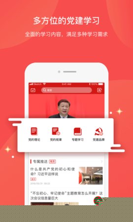 所有学习资源均严格遵循党建工作要求进行筛选与编排,界面风格庄重清晰,营造严肃认真的学习氛围。