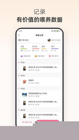 进入今日记录或相关功能板块,选择添加喂食选项。您可以手动输入食物名称,或从预设的常见食物列表中选择,并详细记录品牌、具体分量,还可以附加备注文字或直接拍摄本次喂食的照片进行保存。