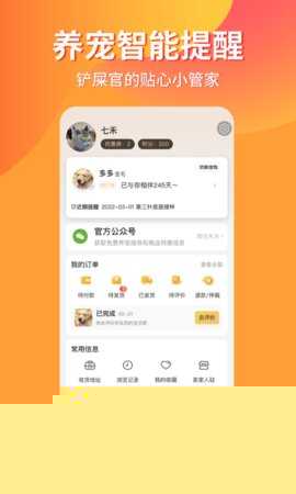 打通宠物从获取、养育到健康管理的各个环节,在一个软件内即可完成交易、购买用品、预约服务及记录健康信息。