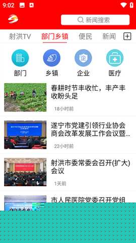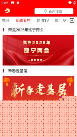 支持图文、视频、直播等多种形式的新闻阅览,用户可根据兴趣订阅不同栏目,个性化获取射洪本地的时政、民生、经济及社会热点动态。