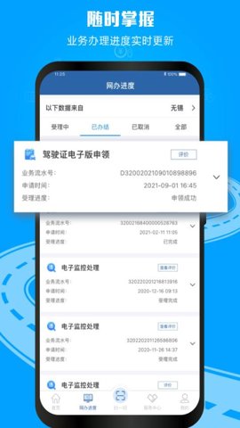 提供驾驶证期满换证、遗失补证、损毁换证、提交身体条件证明、延期审验等业务的在线申请,并可预约驾驶证考试,查询考试成绩,简化了驾驶资格管理的流程。