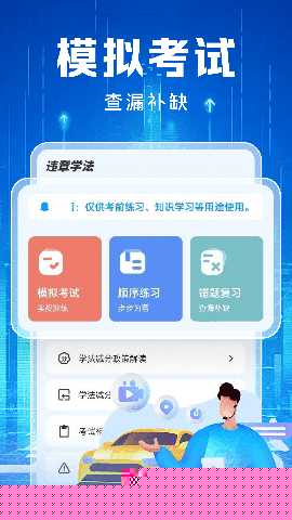 内置丰富的交通法规题库与安全驾驶学习资料,用户可通过模拟练习巩固交规知识,提升安全行车意识。