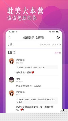 围绕作品建立读者交流区,支持章节评论与话题讨论,形成了以内容为核心的社交互动场景。