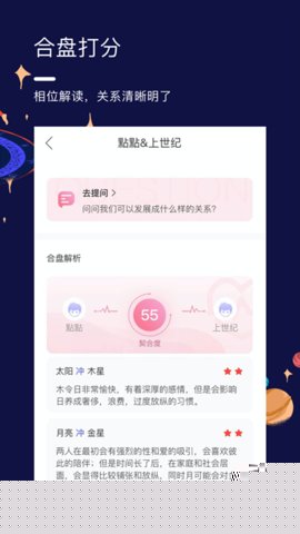 提供双人乃至多人星盘比对功能,通过比较盘、组合中点盘等专业合盘技术,分析个体间在能量互动、情感模式及潜在挑战方面的星象学关联,深化对人际动态的理解。