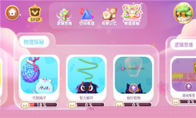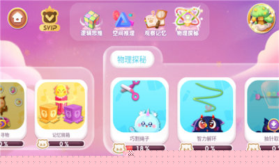 内容体系划分为逻辑思维、空间推理、观察记忆及物理探秘四大核心模块,每个模块聚焦不同认知维度,构建系统化的思维锻炼框架。