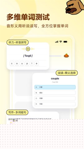 典型的学习流程始于新单词的图文释义与标准发音展示。用户随后需进行跟读录音,系统会给出发音评分,达标后方能进入下一阶段。后续会通过例句填空、情景选择、听力匹配等多种互动题型,在具体语境中深化对词汇用法的理解,完成一个完整的学-练-测闭环。
