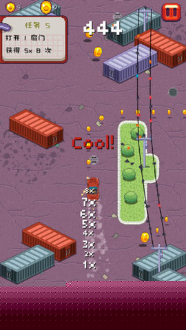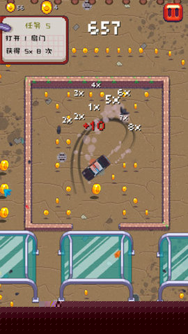 赛道探索与资源管理同样重要。场景中散布着大小不一的金色代币,驾驶车辆碾过即可收集们是解锁新车辆的主要资源。必须时刻保持警觉,应对随机出现的动态威胁,如听到鸣笛需立即规避横向驶来的列车,与障碍物的碰撞将直接导致挑战失败。