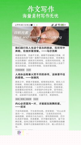 作文写作是一款专注于提升学生语文与英语写作能力的综合性学习软件,为小学至考研各阶段的学习者提供系统化、结构化的写作支持,通过整合海量的真题范文、同步练习、专业写作方法论与动态更新的素材库,构建了一个从输入到输出的完整学习闭环,帮助用户有效解决写作过程中常见的思路阻塞、表达贫乏与结构混乱等问题,在持续的模仿、练习与反思中稳步提升书面表达能力。
