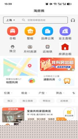 淘房熊是一款专注于房屋租赁服务的移动软件,整合了全国范围内的真实房源信息,通过智能匹配算法与实时数据更新机制,帮助用户高效完成租房决策。软件覆盖合租、整租、品牌公寓等多种租赁类型,并配备地图找房、条件筛选、在线咨询等实用工具,为用户提供安全、便捷、个性化的租房体验。