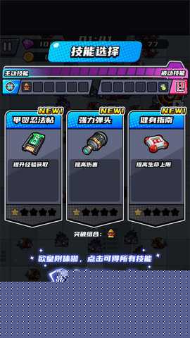 每次角色升级均可从随机三项技能中择一强化,形成独一无二的战斗流派与策略组合。