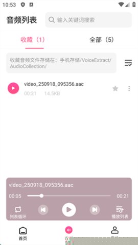 处理完成后,音频会自动保存至指定文件夹,用户可在软件内的收藏列表进行管理,也支持导出到手机存储或云端。