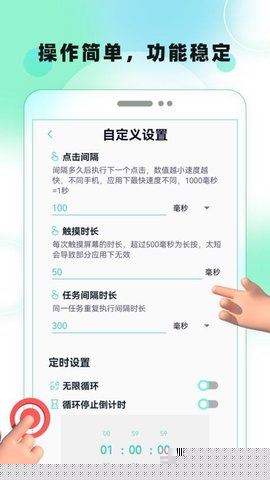点击坐标、触发间隔、持续时长等核心参数均支持用户自定义调整,满足多样化场景需求。