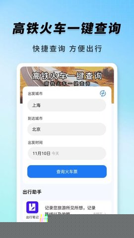 高铁火车一键查询是一款专注于铁路出行信息整合与智能行程规划的服务型软件,通过输入出发地、目的地及出行日期,即时呈现所有可用车次、实时票价与座位余量,并结合天气预测、旅行建议等增值内容,在一个集成化视图中完成查询、比选与出行准备,显著优化了行程安排的效率与体验。