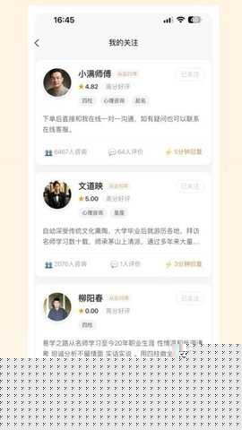 平台严格筛选并汇聚了持有专业资质与丰富经验的心理咨询师,确保用户能够接触到具备胜任力的专业人士,获得科学、有效的心理支持。