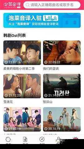 泡菜音译是一款集韩语学习与音乐娱乐于一体的综合性软件,专注于为用户提供韩文歌曲的音译服务,帮助用户在欣赏音乐的掌握韩语发音与词汇,整合了海量韩国流行歌曲资源,通过精准的音译技术将韩文歌词转化为中文谐音,使学习者能够轻松跟唱,提升语言能力。无论是韩语初学者还是音乐爱好者,都能在愉悦的氛围中实现学习目标,享受边听边学的便捷体验。