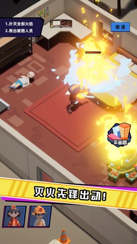 屏幕左上角实时更新的任务面板是行动的最终指南。面板上会明确列出本关卡必须达成的所有核心目标,扑灭主仓库火源、营救全部三名居民或确保化学品罐体安全。指挥的所有行动都必须围绕这些核心目标展开。只有当所有目标前的状态标识均显示为完成,关卡才算成功。在紧张的操作过程中,需要时刻分神关注面板信息,确保救援方向没有偏离。
