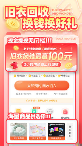 噢啦回收是一款基于移动互联网的环保资源化处理软件,专注于构建系统化的闲置物品循环再生软件,通过数字化平台连接个体家庭与专业环保处理终端,将用户手中的旧衣物、书籍、电子产品等闲置物,转化为可追溯、可量化的环境效益,降低传统废弃物处置的碳排放,并推动可持续生活方式的普及。