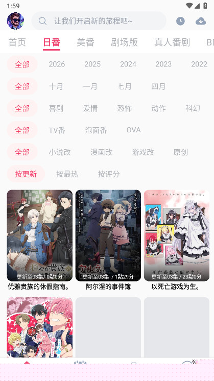 启动软件后,可通过首页的推荐栏目浏览,或直接使用顶部的搜索框输入作品名称、角色名或声优名进行查找。点击目标番剧封面即可进入详情页选择集数播放。