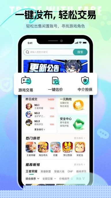 聚合了市面上主流及热门游戏的账号资源,品类齐全,信息更新及时,满足不同的多样化需求。