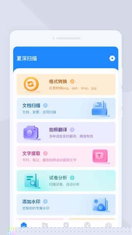 夏深扫描是一款专为安卓移动设备开发的智能文档处理软件集成了高清扫描、光学字符识别、多格式转换及一系列效率工具于一身,兼容Android 6.0及以上系统,以轻量化设计为核心,为用户提供快速、精准的纸质文档数字化软件,并能将图片便捷地转换为PDF、添加个性化水印,其基础功能完全免费,有效覆盖了学习、办公及日常生活中的多种文档处理场景。