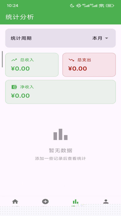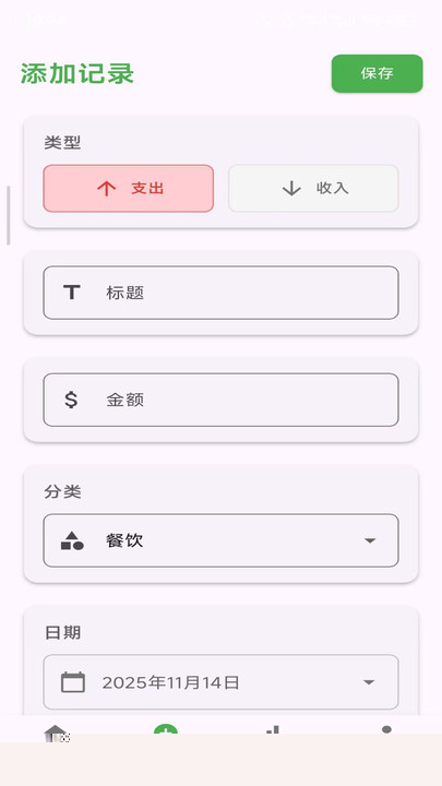 在本站下载并安装完成后,首次启动时会请求必要的通知等权限,授权后即可直接进入软件主界面。所有基础功能均已就绪,用户可直接点击添加按钮记录第一笔收支。